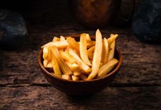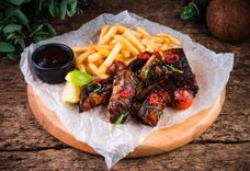 300/150/30 г • Свиные рёбра, томлёные по фирменному рецепту. Подаются с соусом Барбекю и картофелем фри