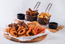 1000 г • Специальное лакомство для ценителей пива: куриные наггетсы, луковые кольца, колбаски гриль, куриные крылья, гренки, картофельные дольки. Подается с соусом барбекю и горчицей