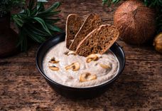 290 г • Маринованный болгарский перец со сливочным сыром, грецким орехом и вялеными томатами. Подается с ореховым соусом