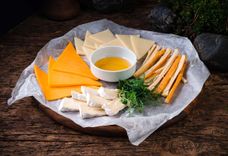250/30 г • Ассорти из 5 видов сыра: Пармезан, Чеддер, Бри и Джил. Подаётся с мёдом